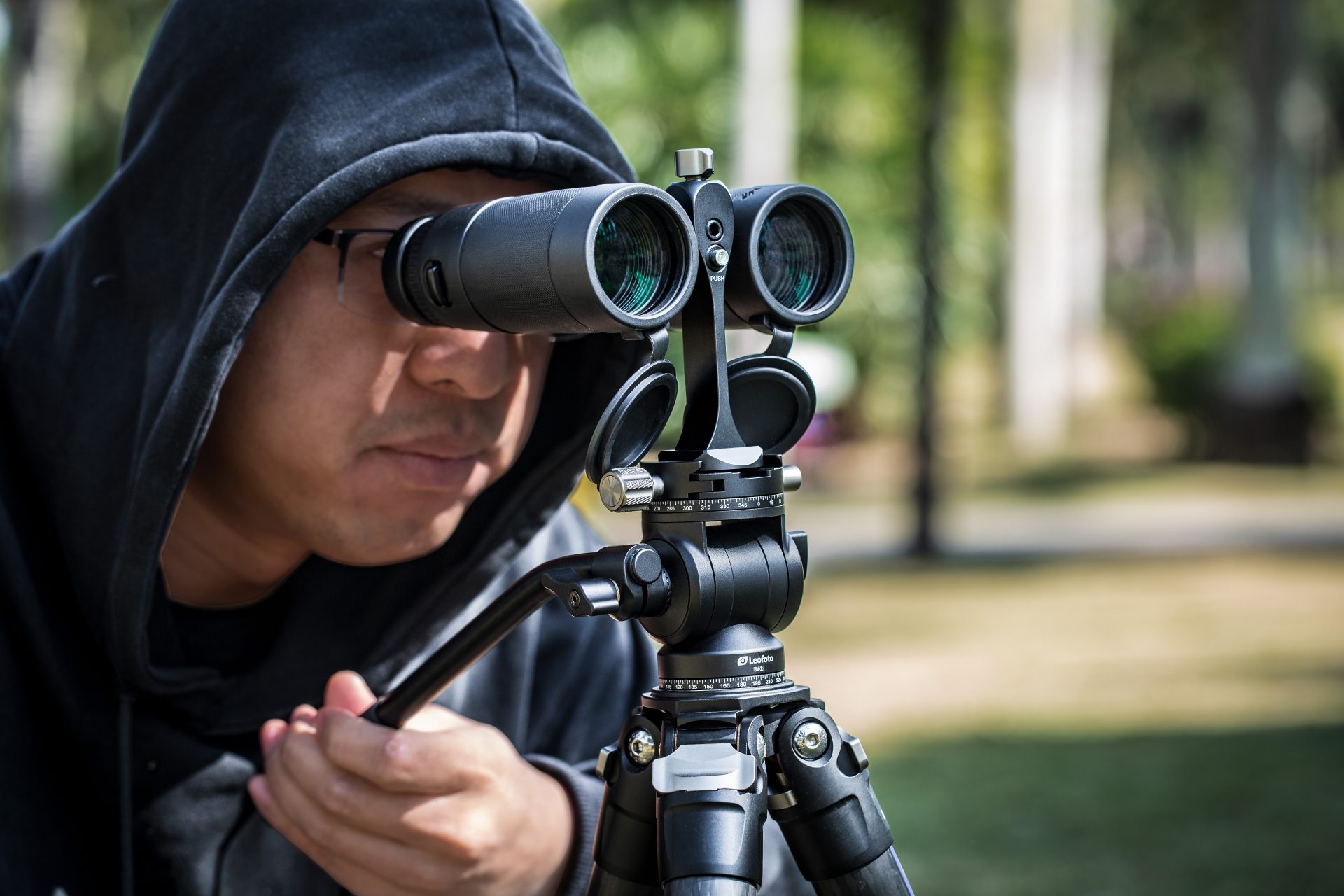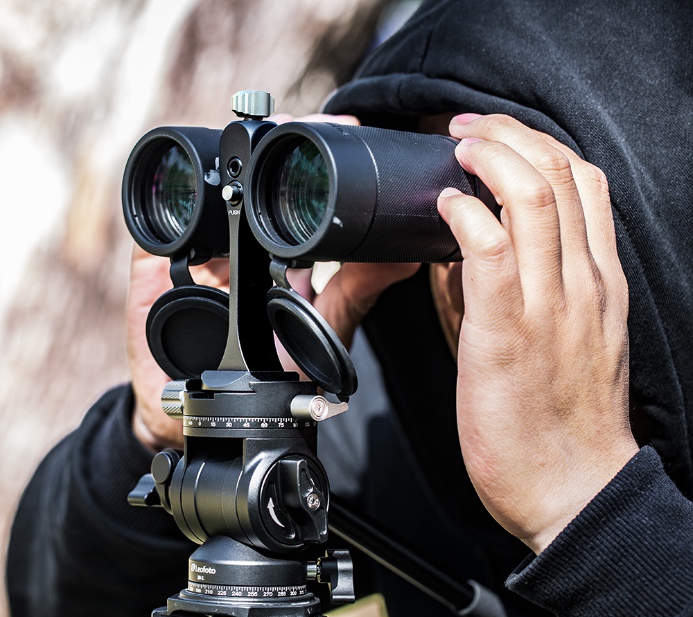 別売りのオプションパーツを使用する事でLeica, swarovskiZeiss、様々なブランドの双 眼鏡を三脚に取付け、安定した操作が可能。