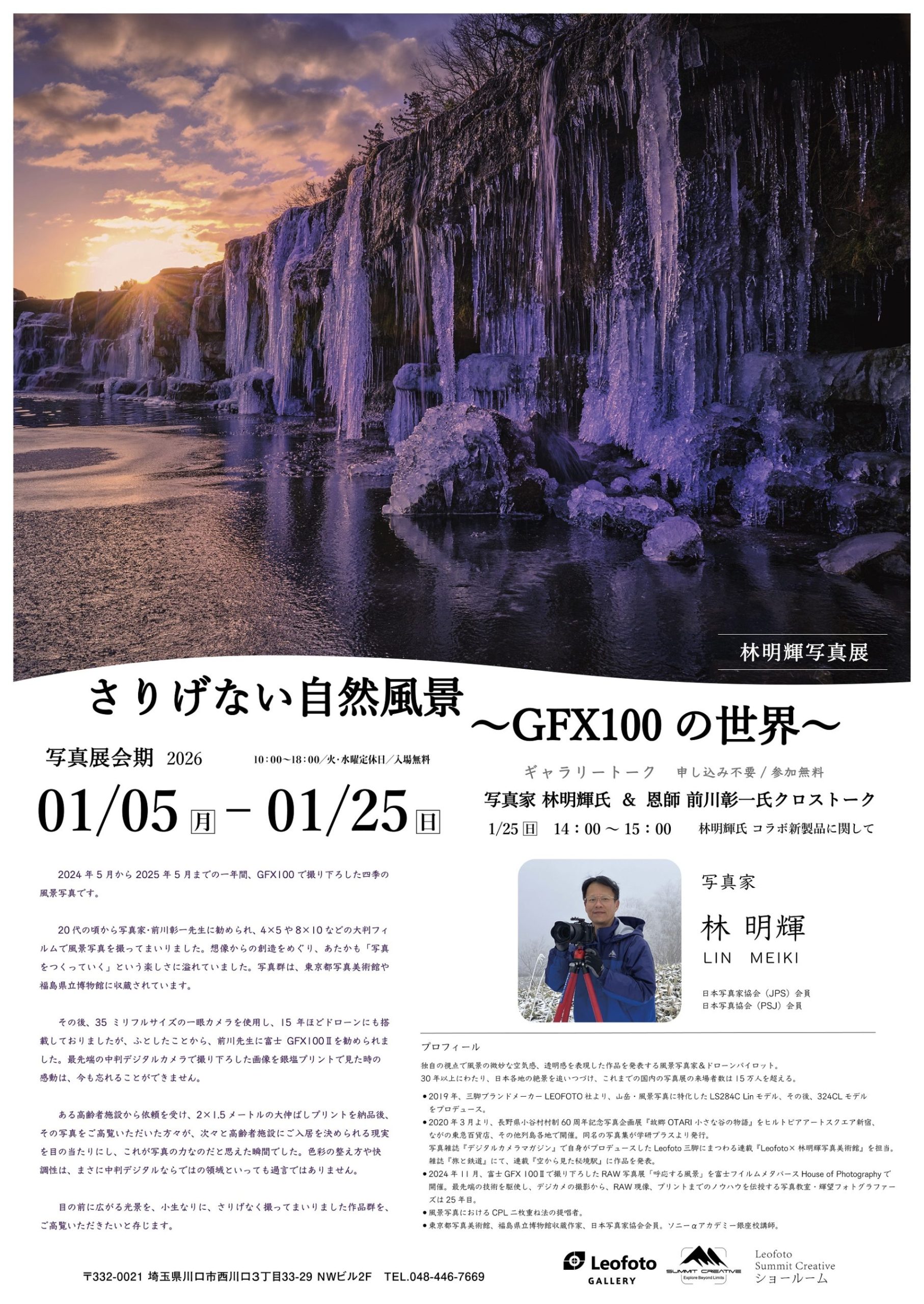 2025/12/08【イベント情報】1/5~ 写真家 林 明輝氏 写真展&ギャラリートーク 開催のお知らせ1/5(月)~1/25(日)にレオフォト/サミットクリエイティブショールームにて写真家 林 明輝氏写真展を開催致します。また、下記の日程でギャラリートークも開催致します。 ギャラリートーク開催日程 (申し込み不要&参加無料) 1月25日(日) 14時~ 写真家 林 明輝氏×恩師 前川 彰一氏 クロストーク「コラボ新製品に関して」 SHARE REPOST TOPに戻る