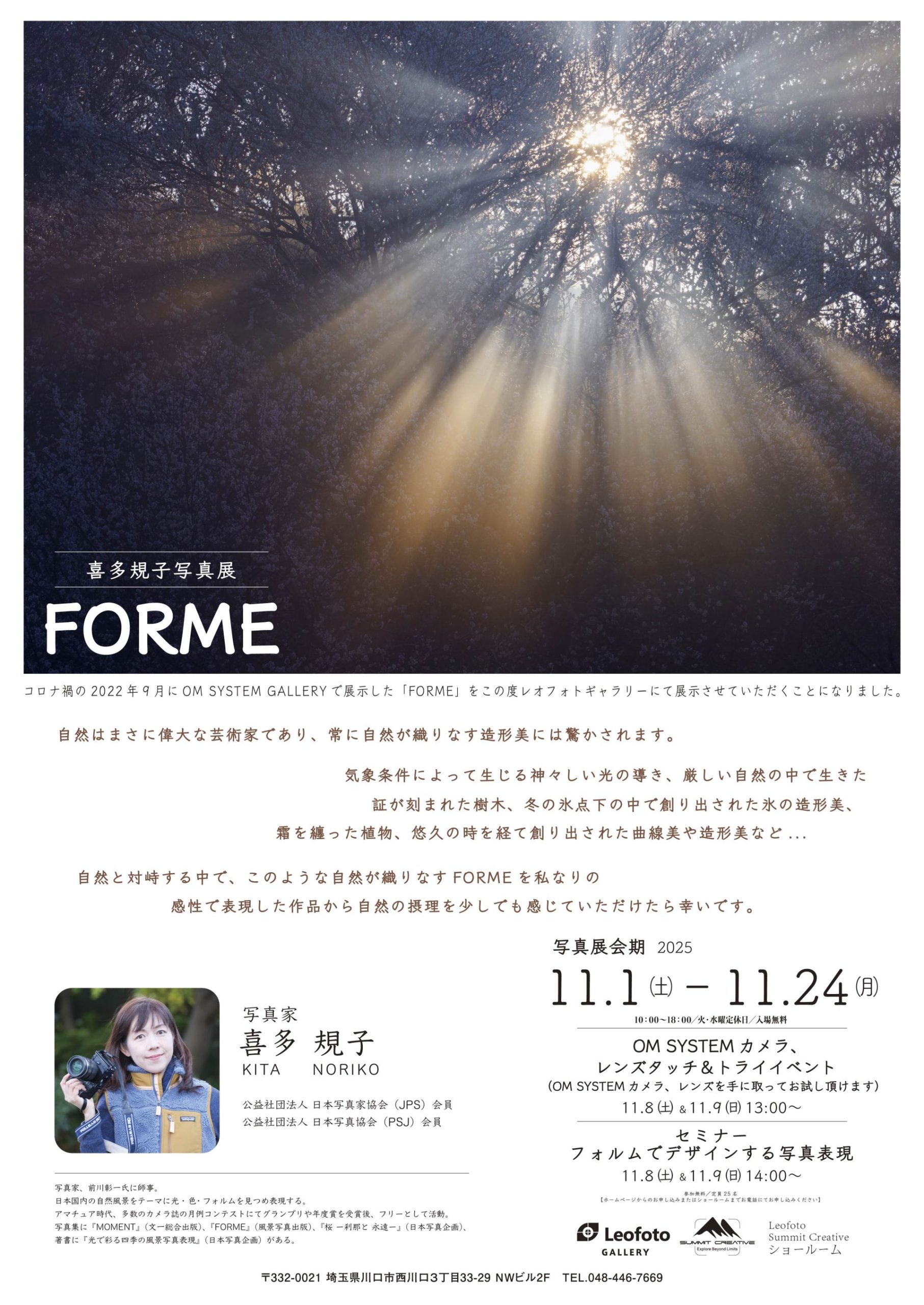 11/1(土)~11/24(月)にレオフォトショールームにて写真家 喜多 規子氏写真展を開催致します。
