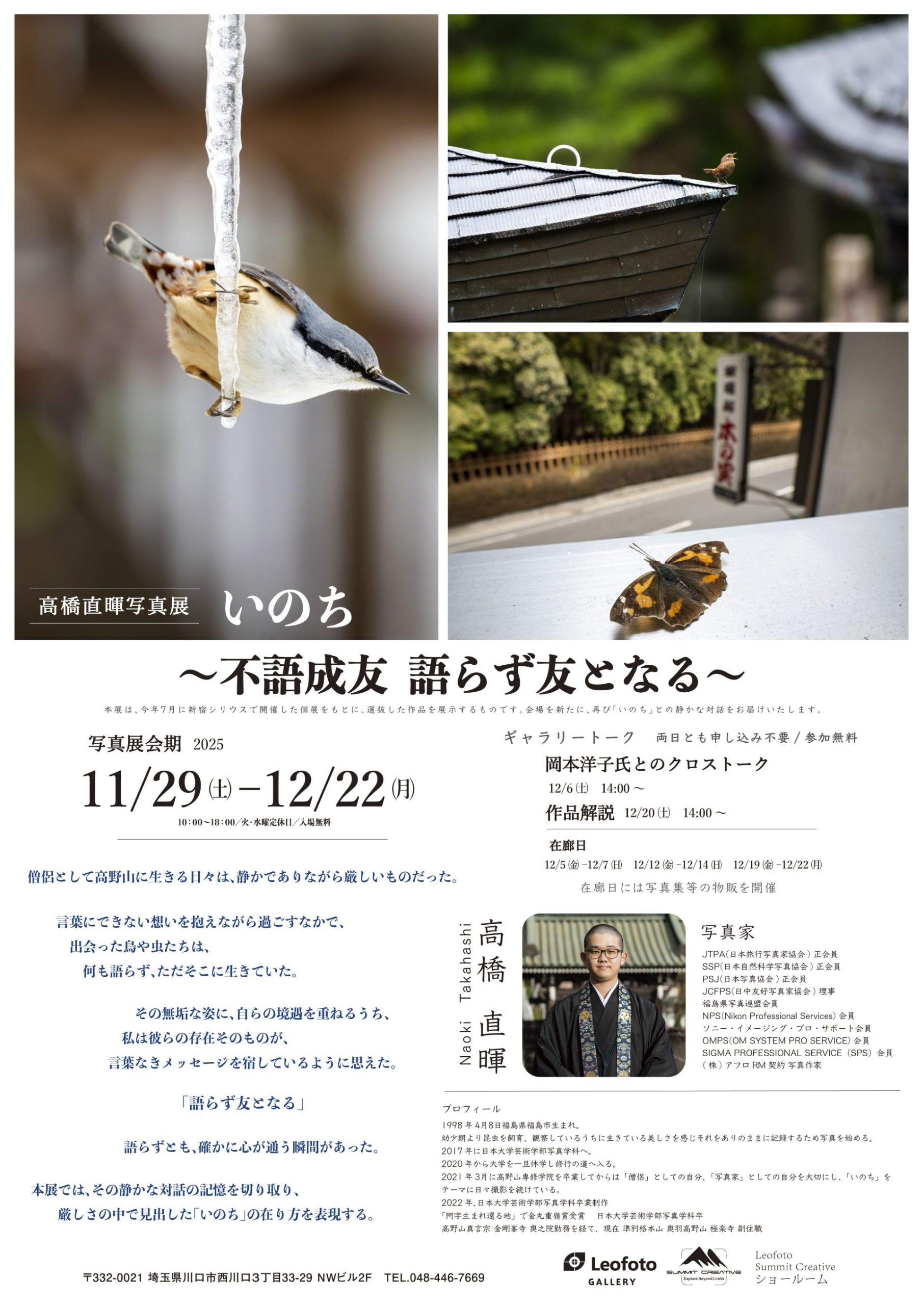 【イベント情報】11/29~ 写真家 高橋 直暉氏 写真展&トークセミナー 開催のお知らせ