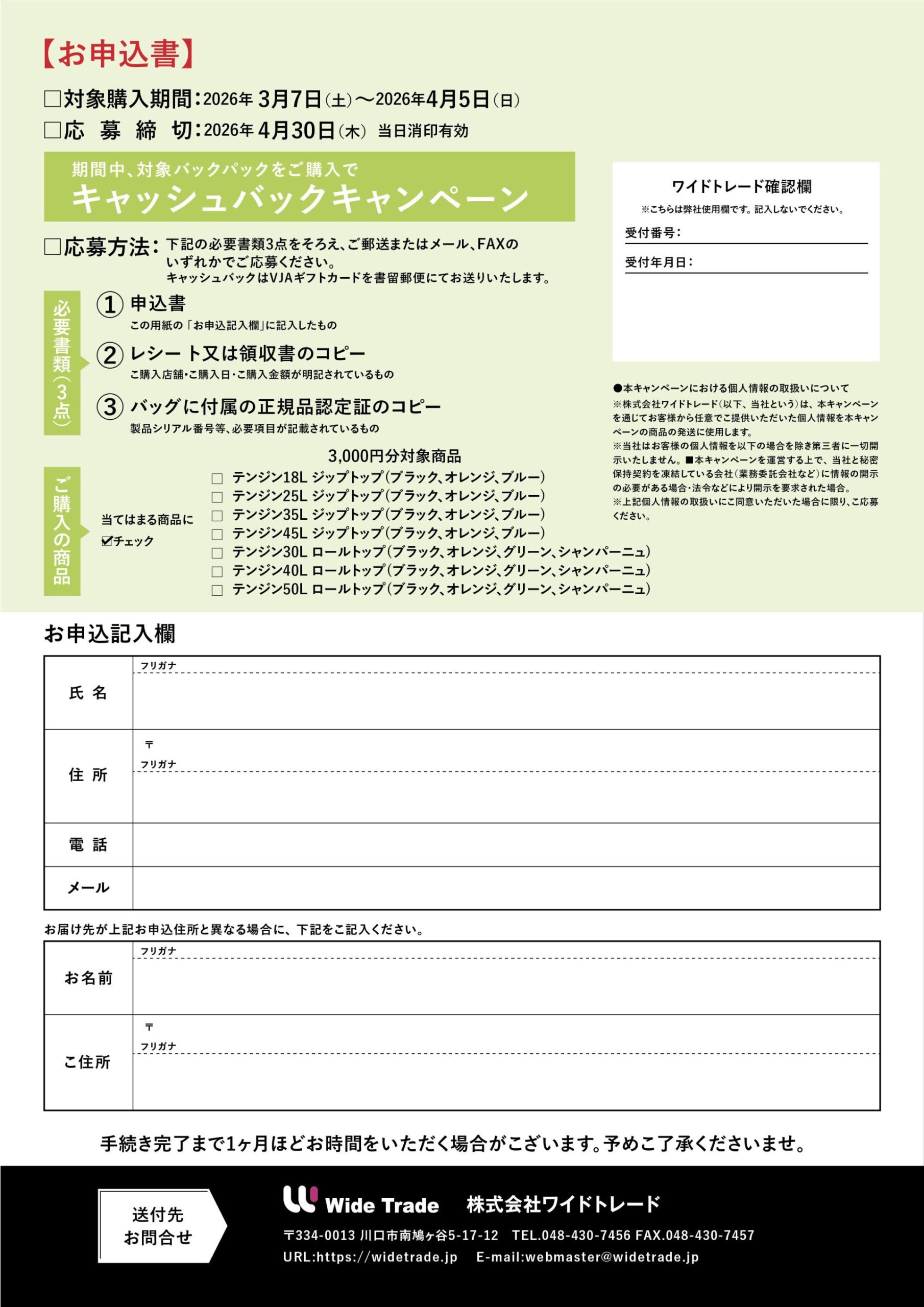 2026年3月7日(土)から2026年4月5日(日)までの期間限定で、キャッシュバックキャンペーンを開催します。